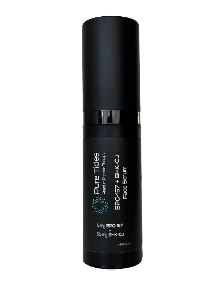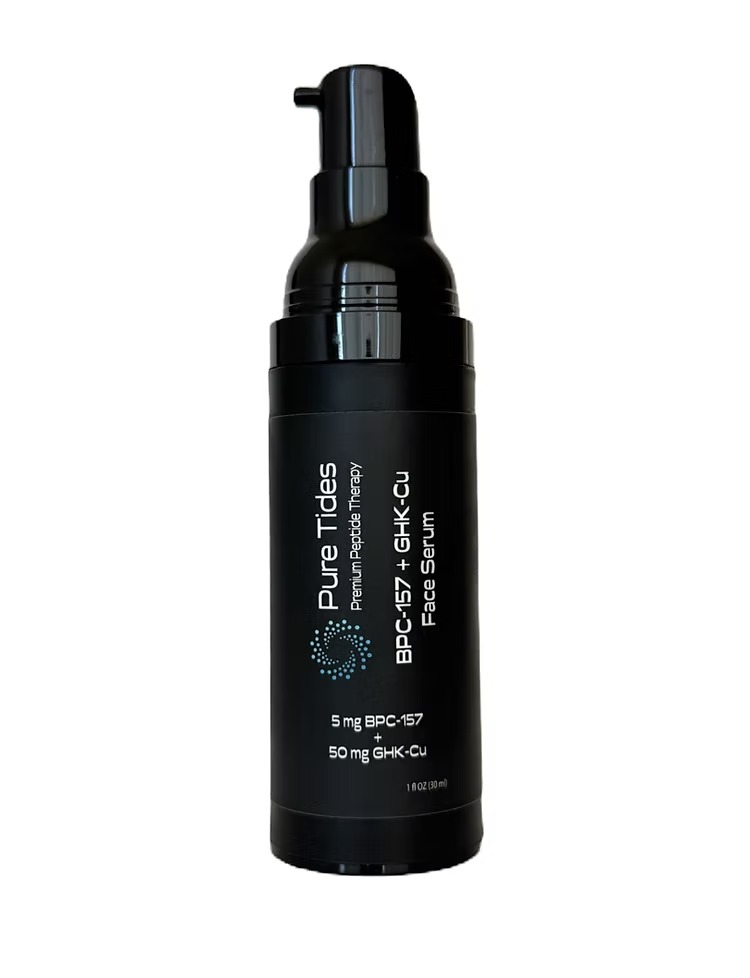 Original BPC-157+GHK-Cu Face Serum. A facial recovery essential. Our light face serum will soothe and hydrate your skin, while helping repair damaged skin. 5mg of BPC-157 and 50mg GHK-Cu. 1oz.